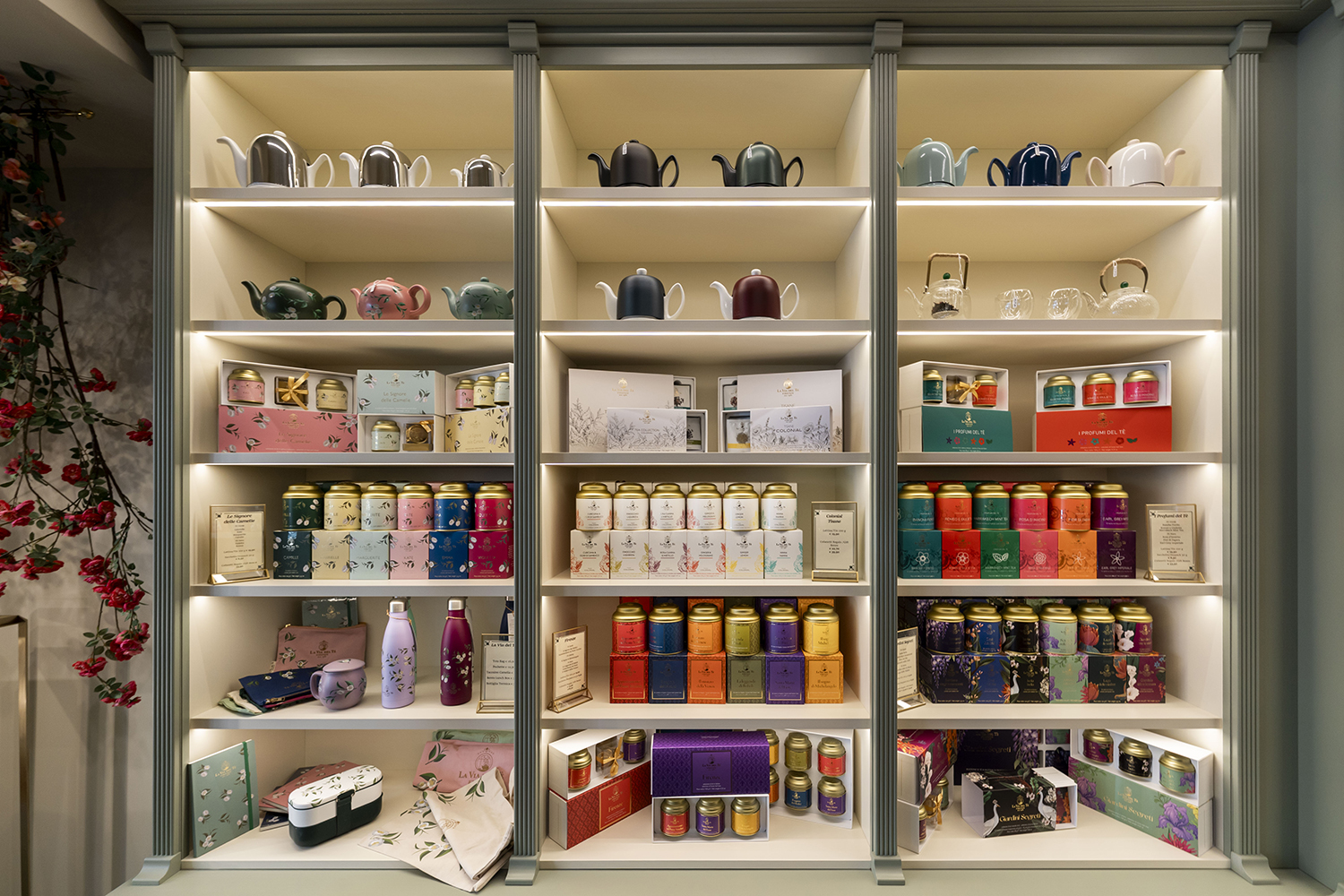 Nella boutique è possibile acquistare circa 200 referenze diverse, tra tè foglia intera mono-origine, miscele profumate, infusi di frutta e tisane oltre a tutte le collezioni di prodotti a marchio La Via del Tè, gli accessori e i serviti da tè.