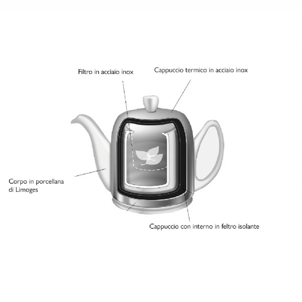 Un prodotto essenziale per tutti gli amanti del tè. Una vera icona, realizzata dalla Maison Degrenne dal 1953 interamente in Francia. Il corpo in porcellana è proveniente da Limoges e si distingue per la raffinata ricerca dell'eleganza. Disponibile in più misure e diversi colori. La teiera può essere lavata in lavastoviglie; il coperchio e il feltro interno possono essere lavati a mano. Si raccomanda il prelavaggio dei prodotti prima del primo utilizzo.